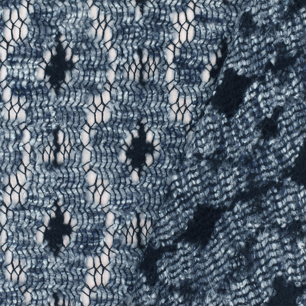 Ash Blue-Black-Multi Abstract Raschel Crochet Knit Fabric