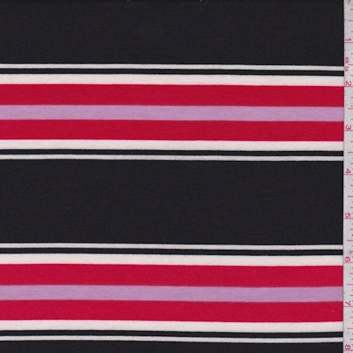 Black/Red/Pink Stripe Double Brushed French Terry Knit Fabric