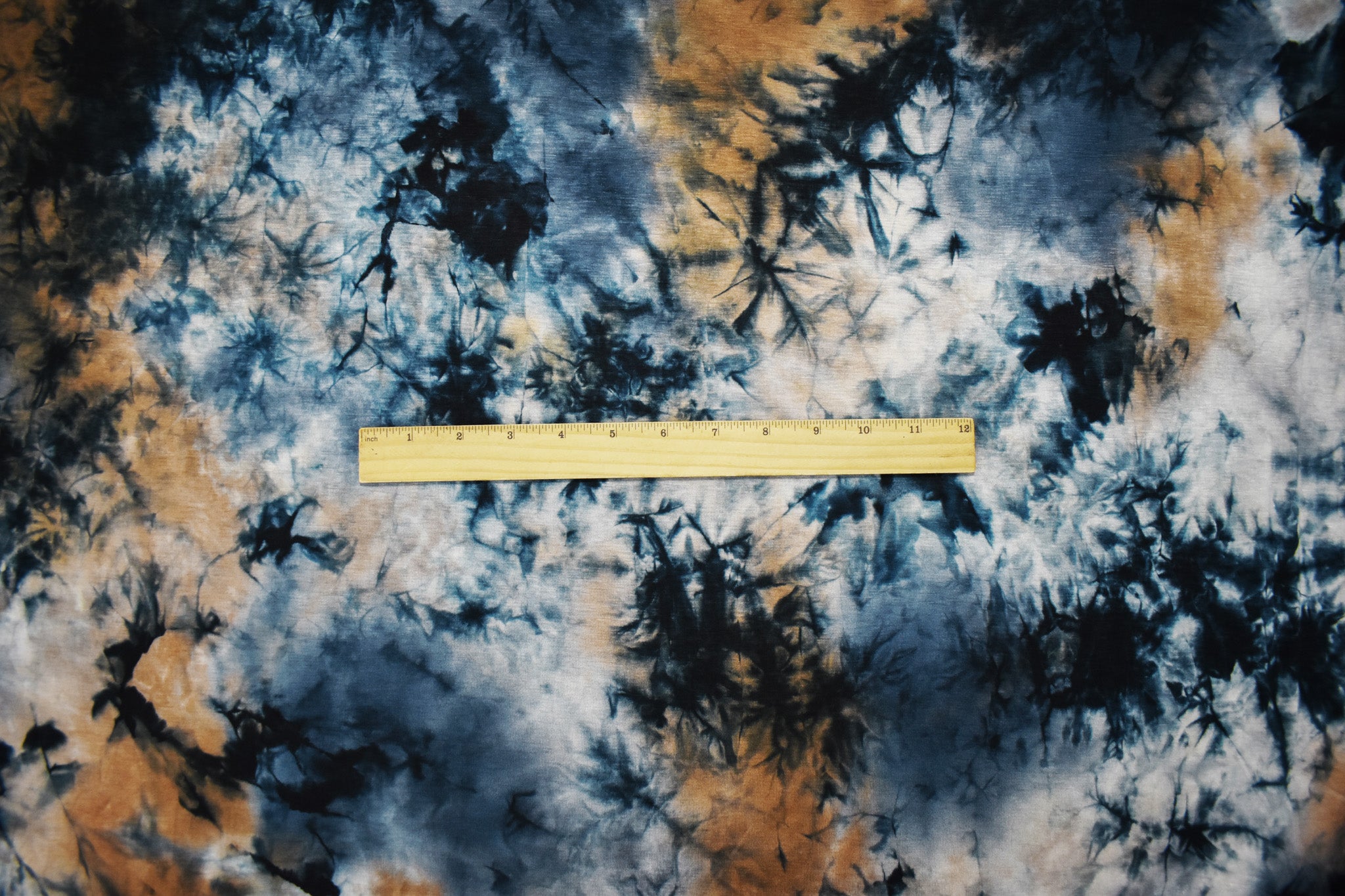 -This rayon-spandex jersey knit fabric features a bold tie-dye in blue color hues, offering a stylish, bohemian look. The stretchy, soft, and breathable material ensures comfort and ease of movement, making it perfect for flowy dresses, tops, and loungewear. Its lightweight drape and excellent recovery provide a flattering fit for various garment styles.
