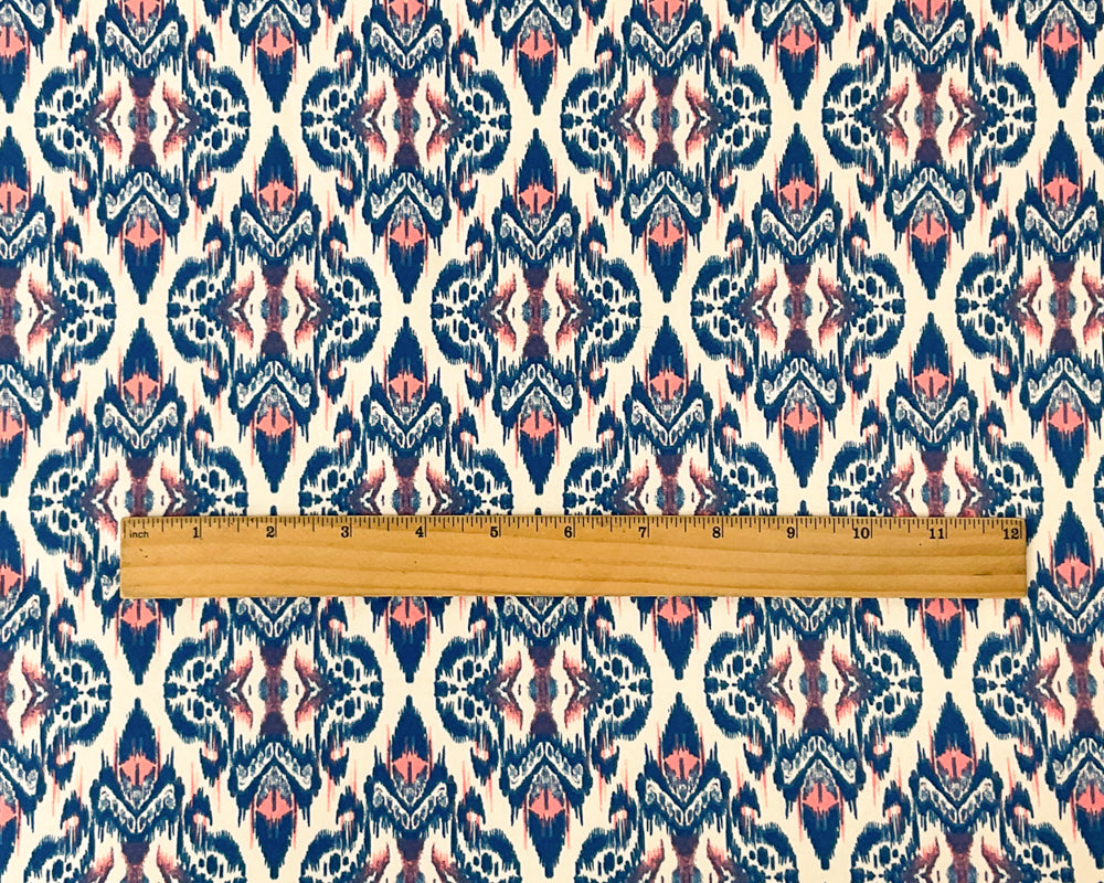 Blue-Multi Poly Stretch Ikat Print DB Jersey Knit Fabric