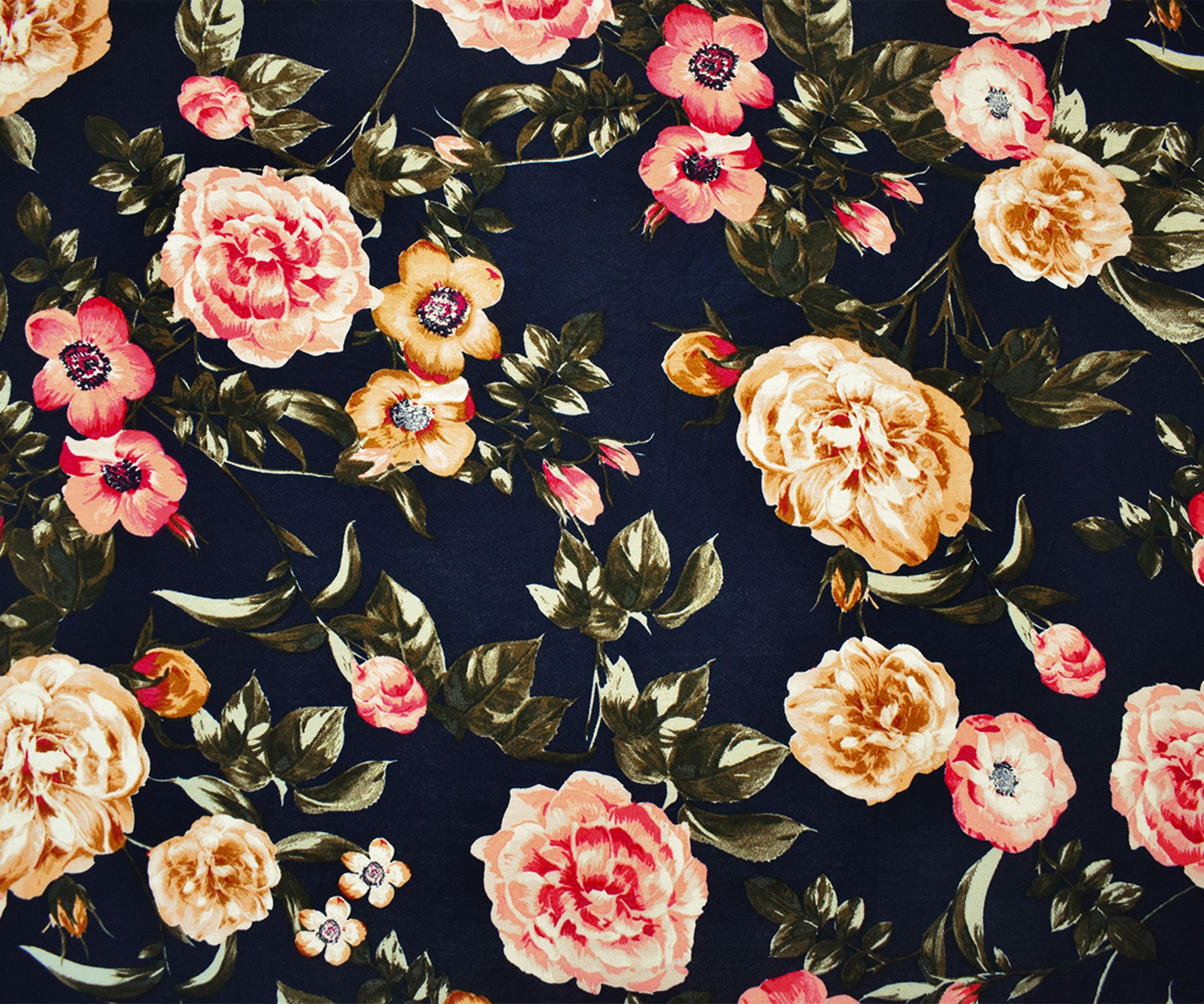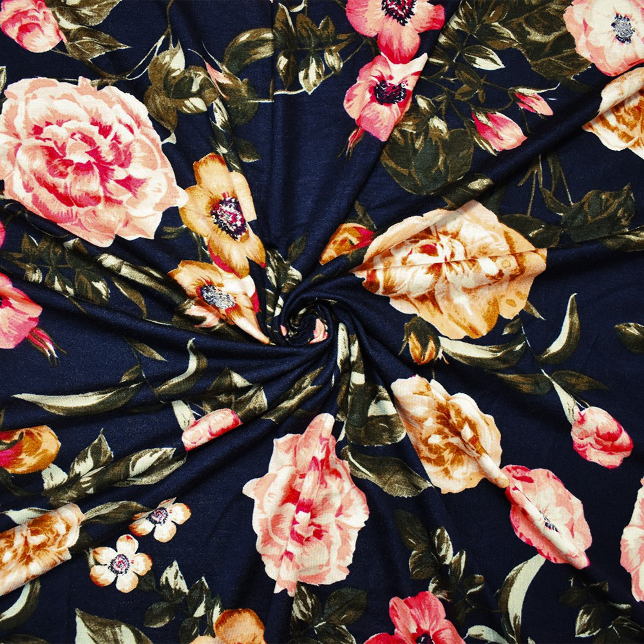 Blue-Multi Rayon Stretch Spandex Floral Print Jersey Knit Fabric