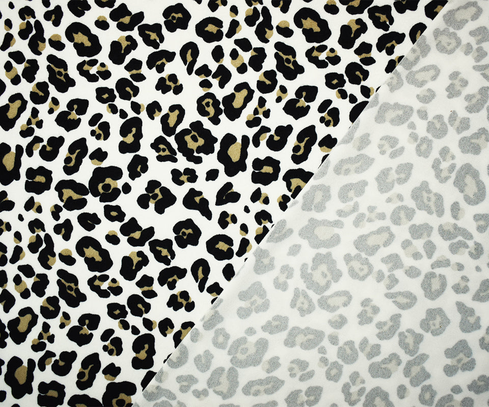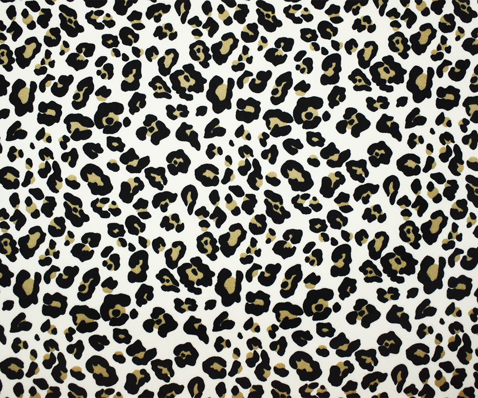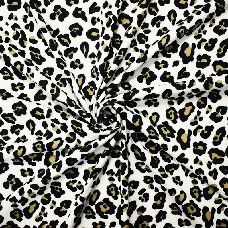 White-Multi Poly Stretch Leopard Print DB Jersey Knit Fabric