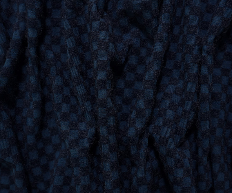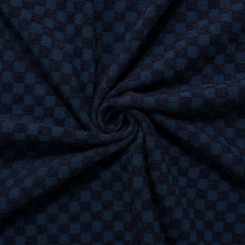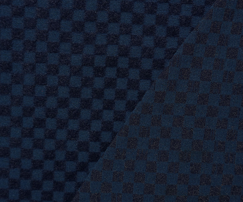 Blue Poly Spandex Stretch Check Brushed Face Double Knit Fabric