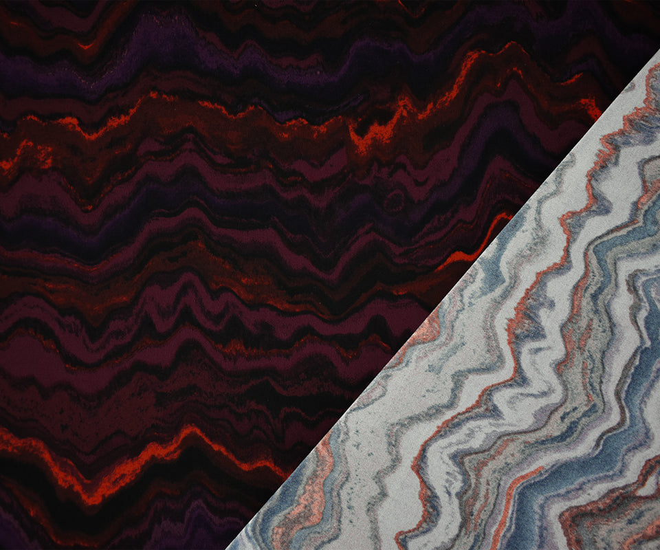 -Poly stretch spandex ITY knit fabric printed with an abstract inspired pattern