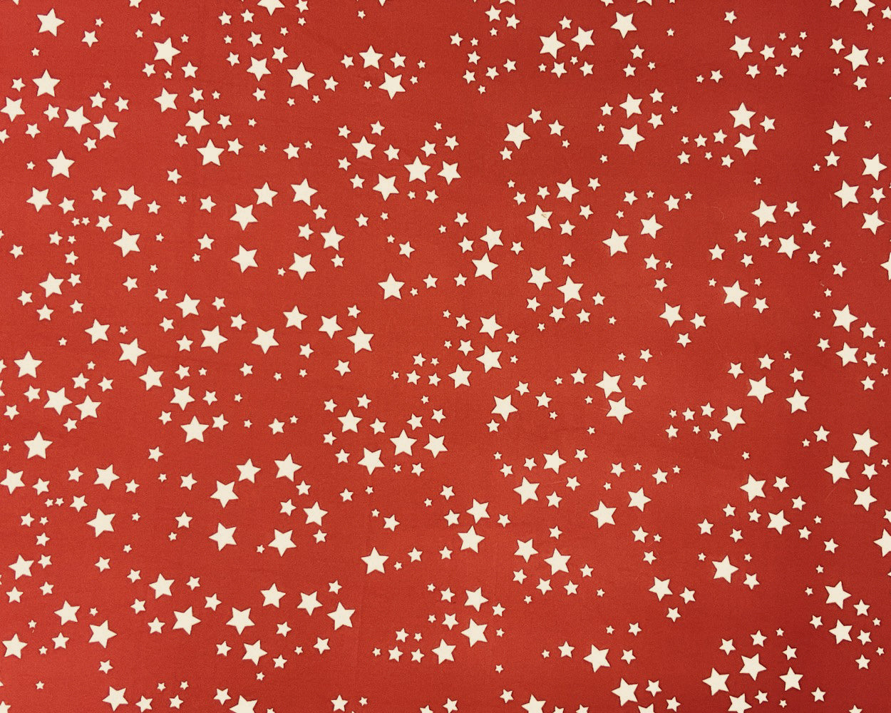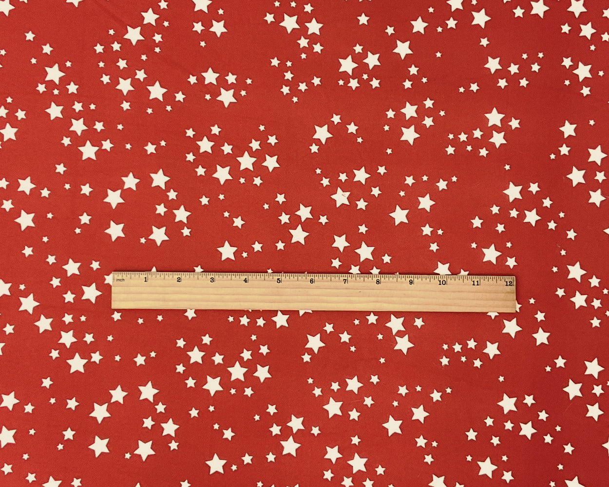 Red-White Poly Spandex Stretch Stars Print DB Jersey Knit Fabric