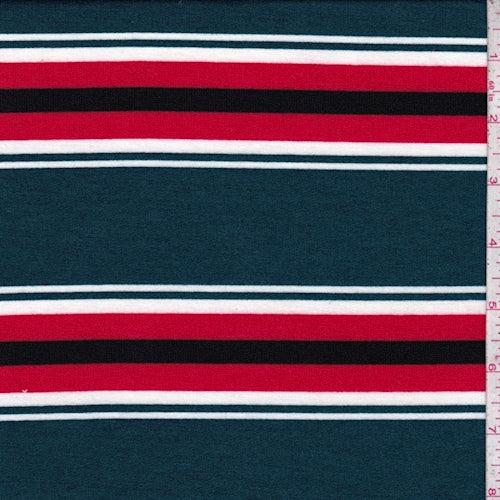 Spruce/Red Stripe Brushed French Terry Knit Fabric