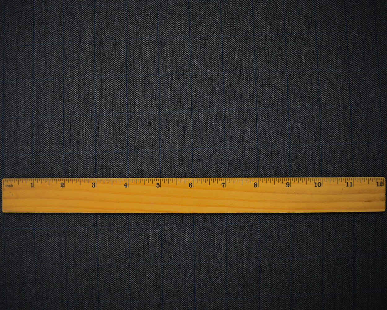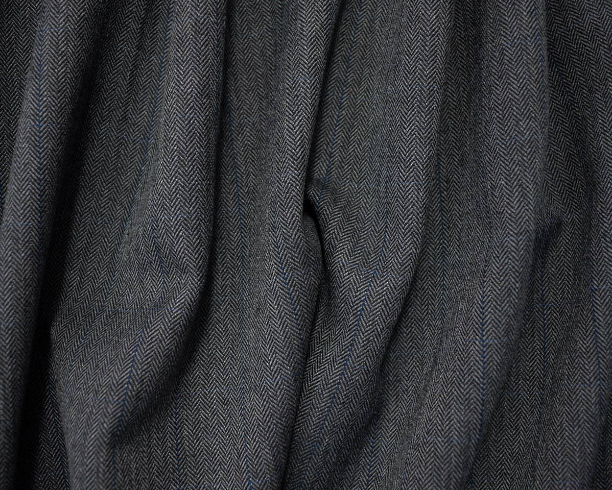 Black-Gray-Blue Wool Cotton Herringbone Check Twill Woven Suiting Fabric