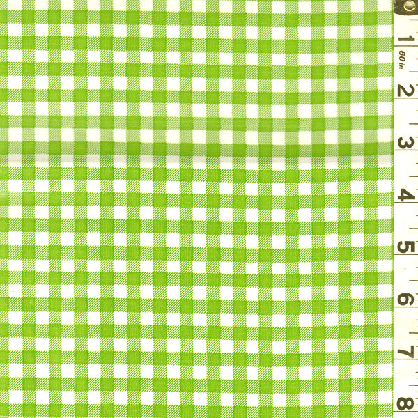 Green and White Check Oilcloth Fabric