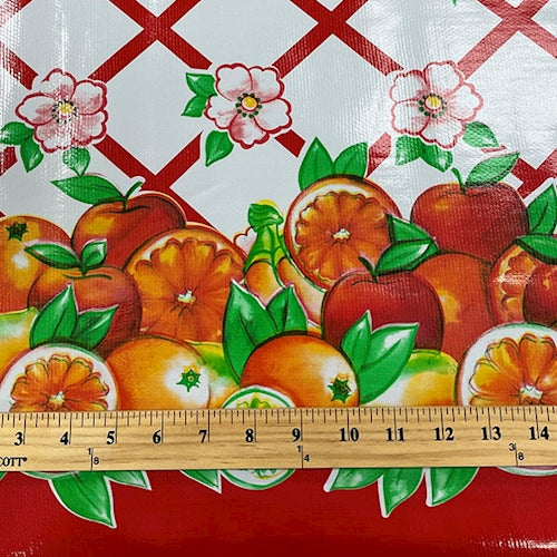 Red Fruit Lattice Oilcloth Fabric - Reorderable