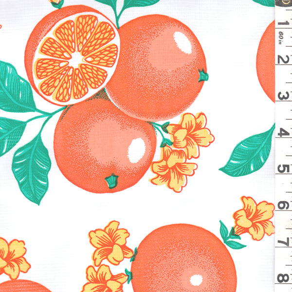 Orange, White, and Yellow Floral and Oranges Print on White Oilcloth Fabric