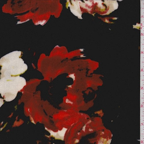 1 1/2 YD PC-Midnight Navy/Multi Floral Print Stretch Velvet Knit Fabric