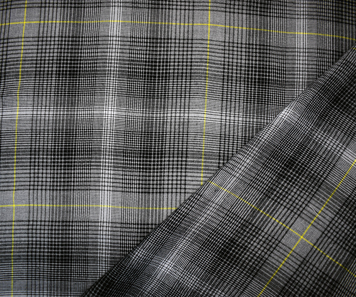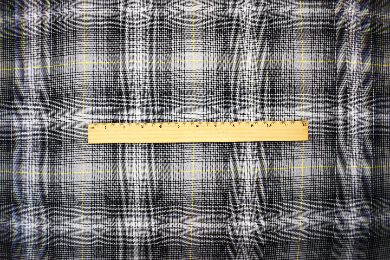 1 YD PC-Gray-Black-Yellow Cotton Famous Maker Plaid Twill Flannel Woven Fabric