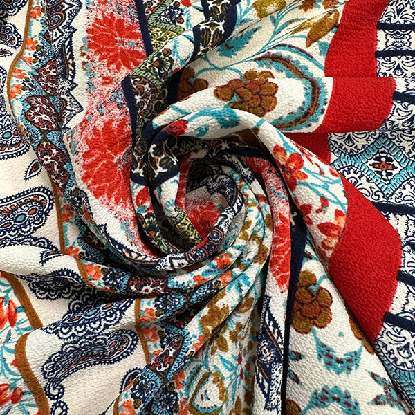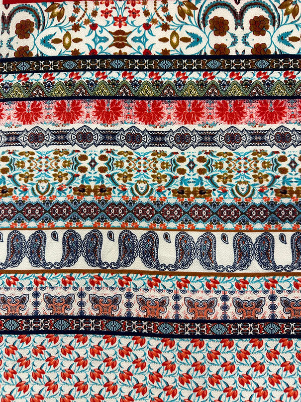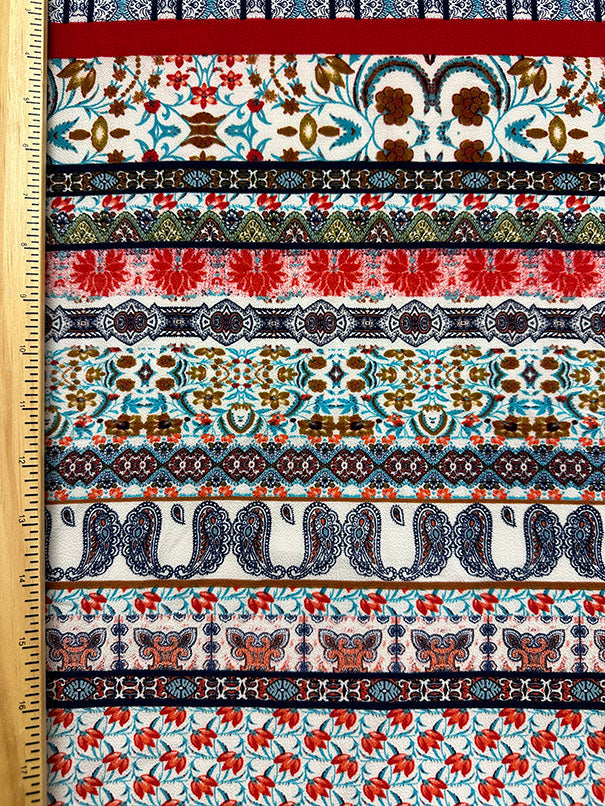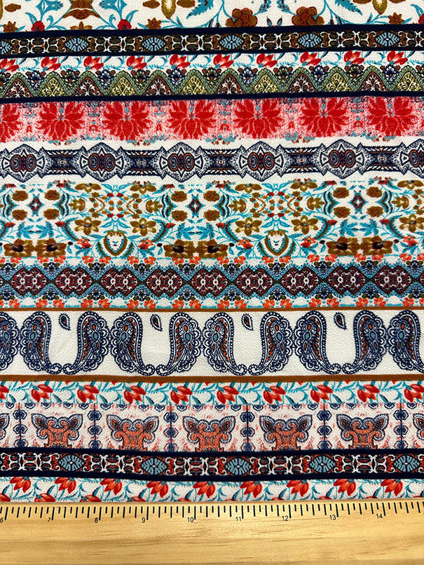 1 YD PC-White Multi Woven Stretch Crepe Fabric