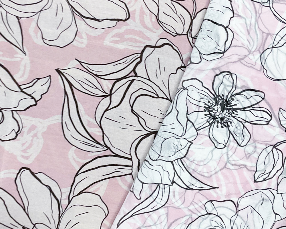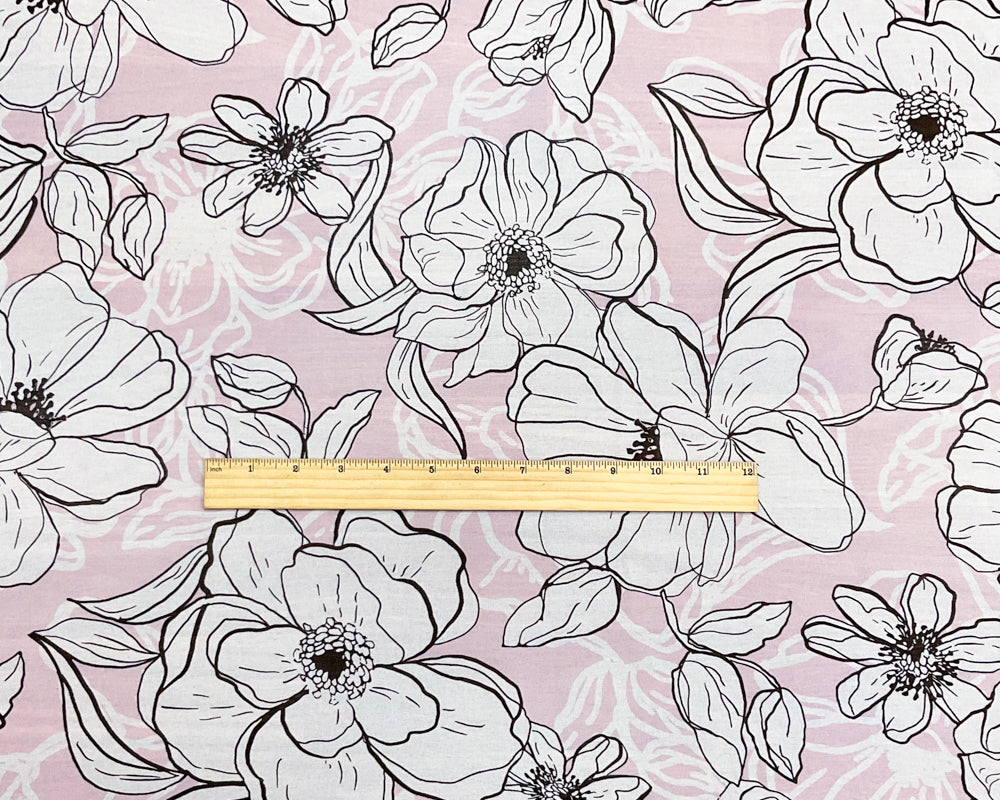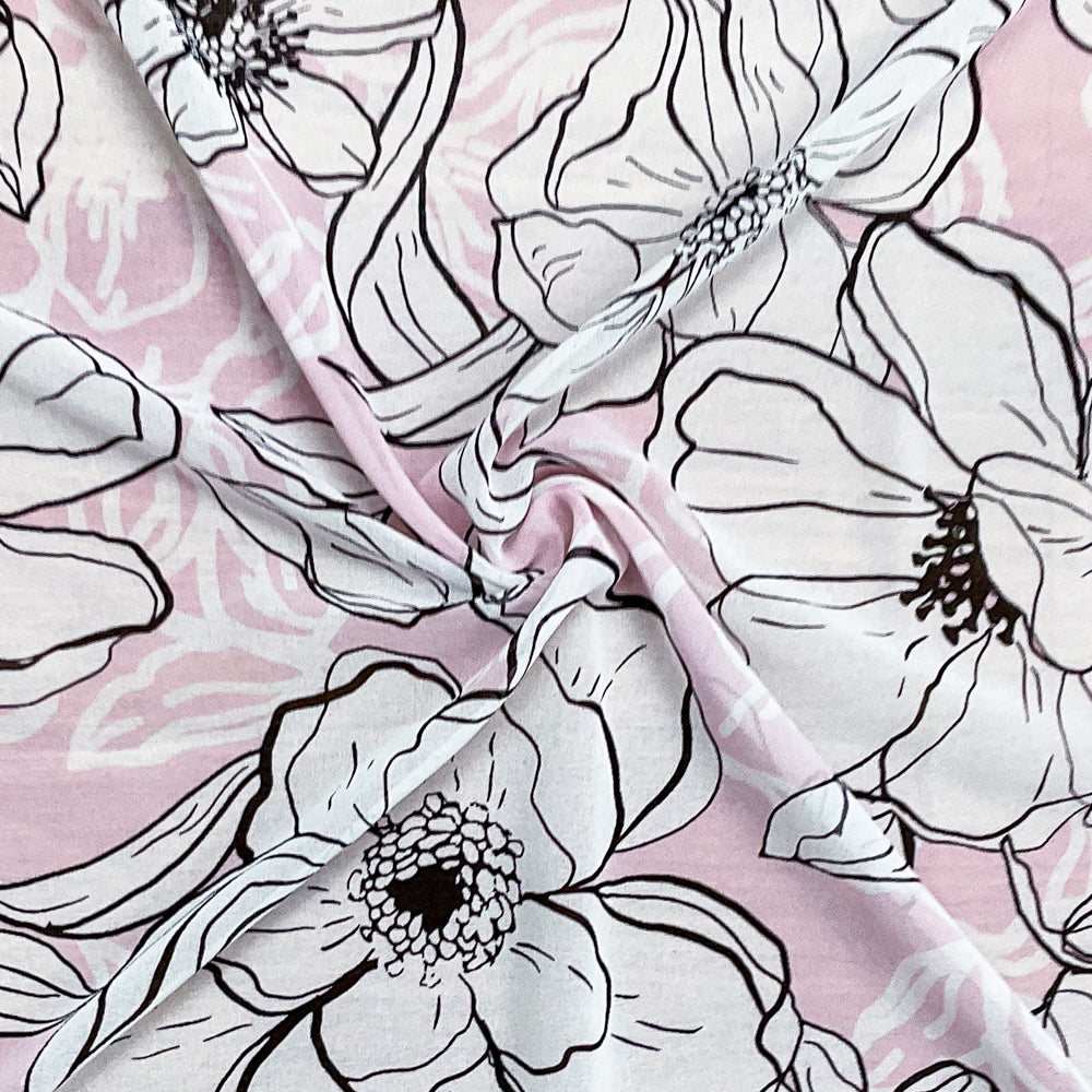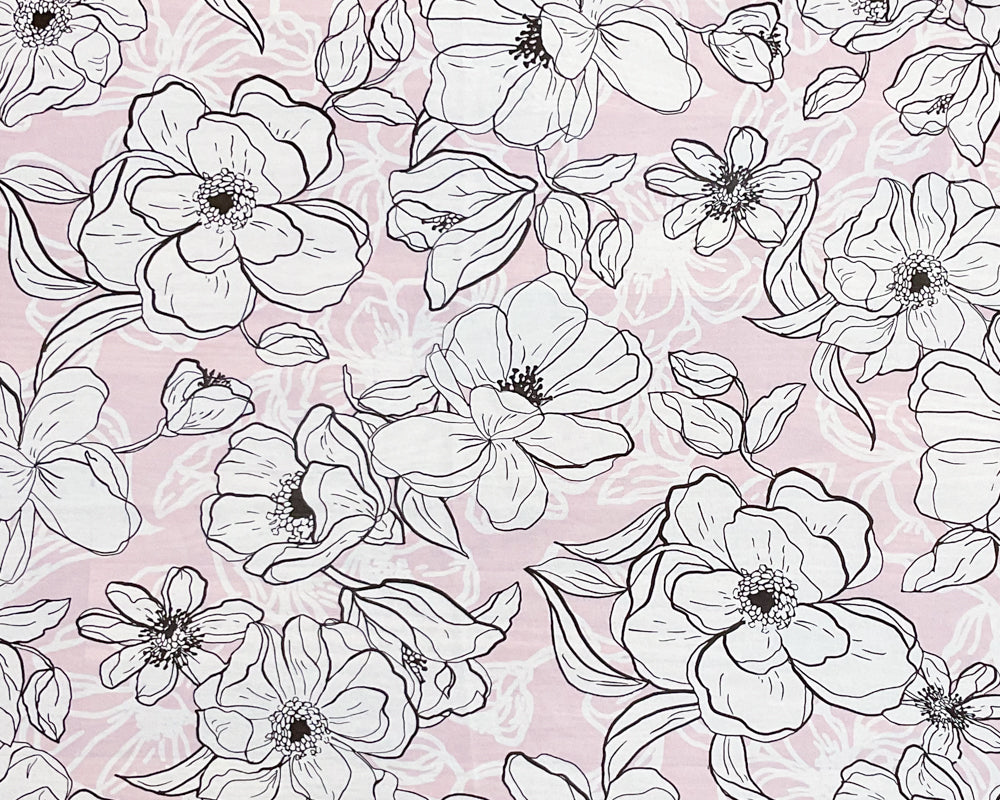 2 1/2 YD PC-Pink-White-Black Poly Floral Printed Chiffon Woven Fabric