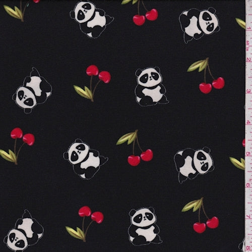 2 YD PC-Black Panda/Cherries Double Brushed Jersey Knit Fabric