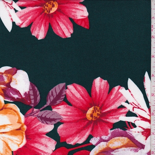 2 YD PC-Hunter/Red Floral Pop Double Brushed Jersey Knit Fabric