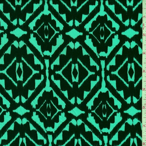 Aqua Green/Indigo Inca Diamond Challis Fabric