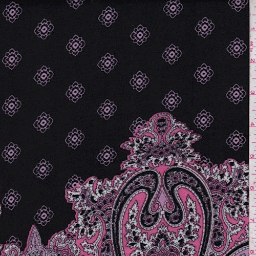 Black/Pink/Lilac Medallion/Paisley Crepe Fabric