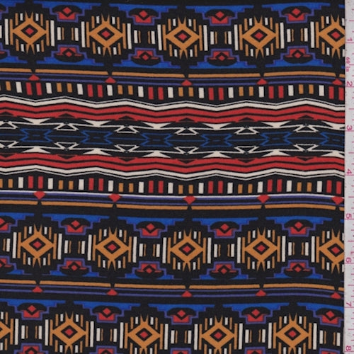 Black/Pumpkin/Cobalt Southwest Stripe Rayon Challis Fabric