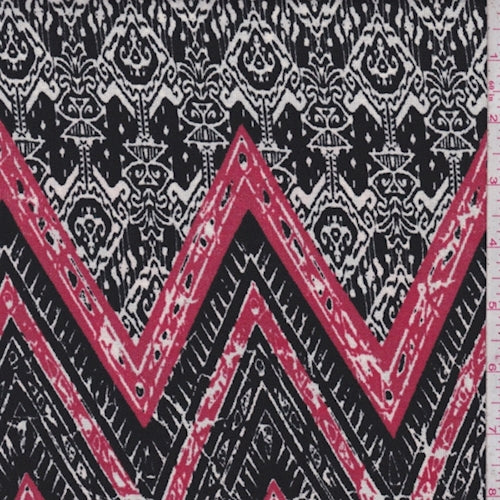 Black/Ruby Chevron Crinkled Crepe Fabric