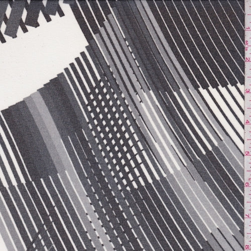 Black/Stone/Ivory Abstract Stripe Crepe Georgette Fabric