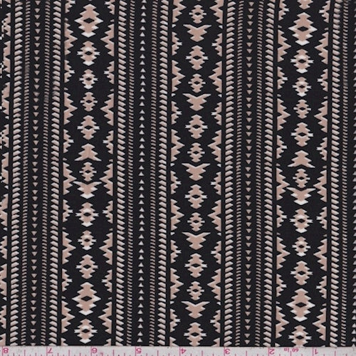 Black/Tan Aztec Stripe Challis Fabric