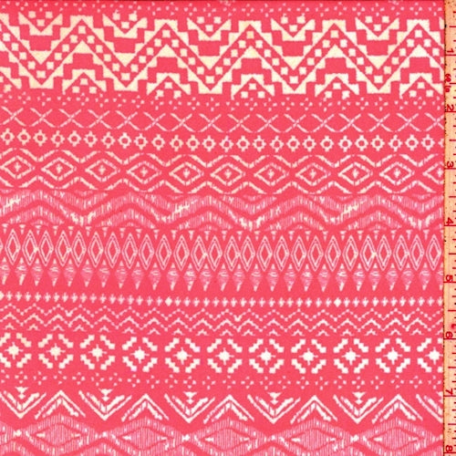 Day Glo Pink/White Tribal Stripe Challis Fabric