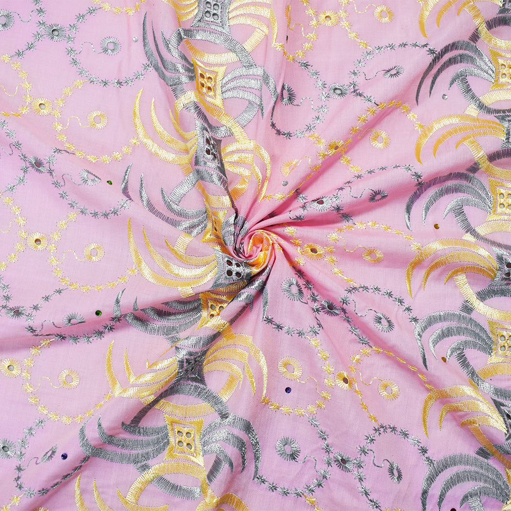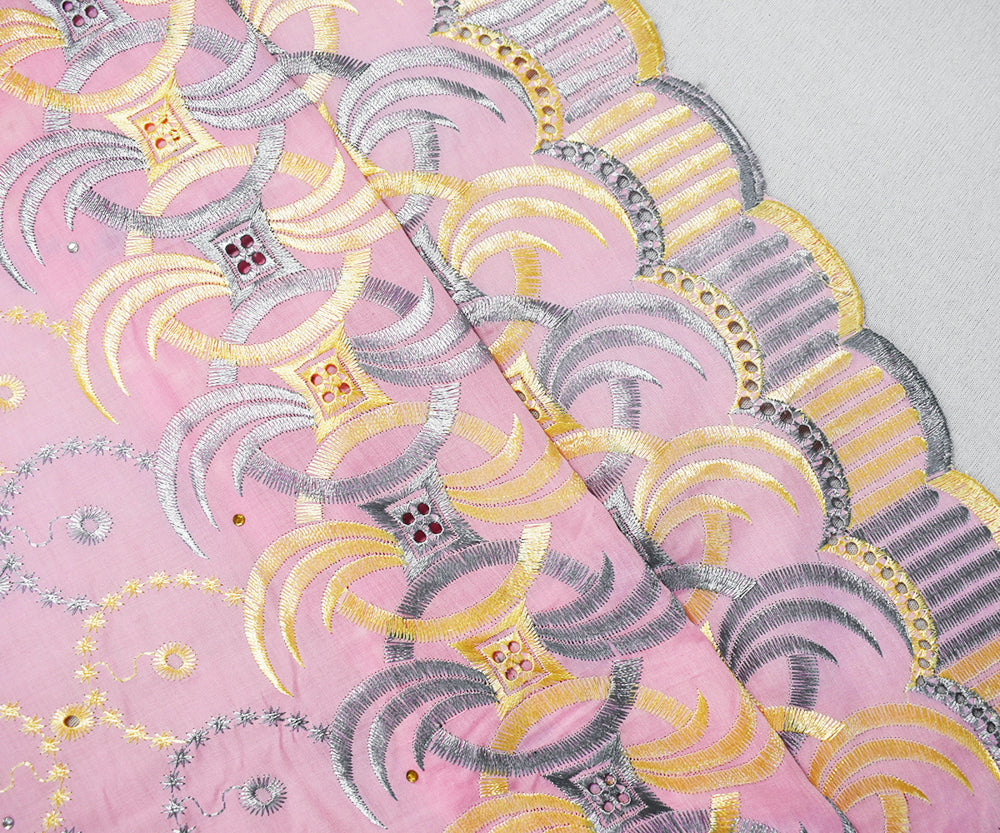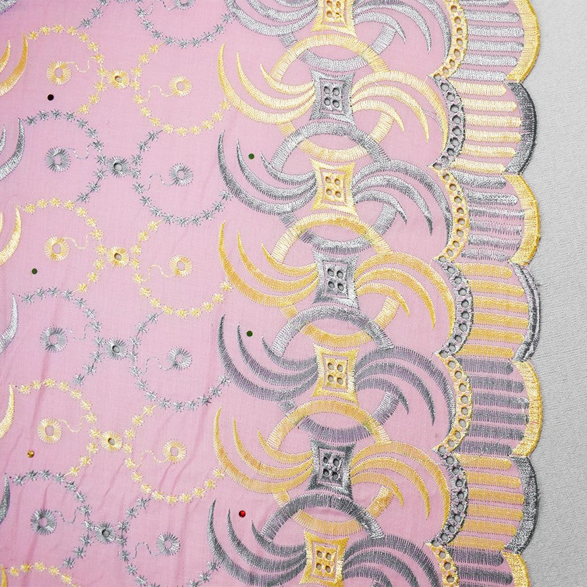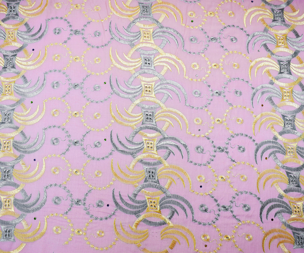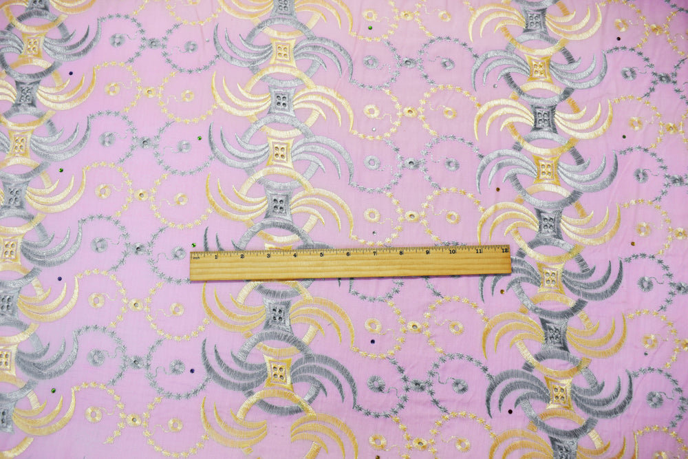 Pink-Multi Poly Embroidered Abstract Scallop Rhinestone Woven Fabric