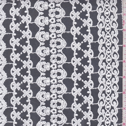 White Deco Stripe Micro Mesh Fabric