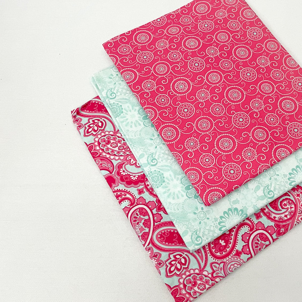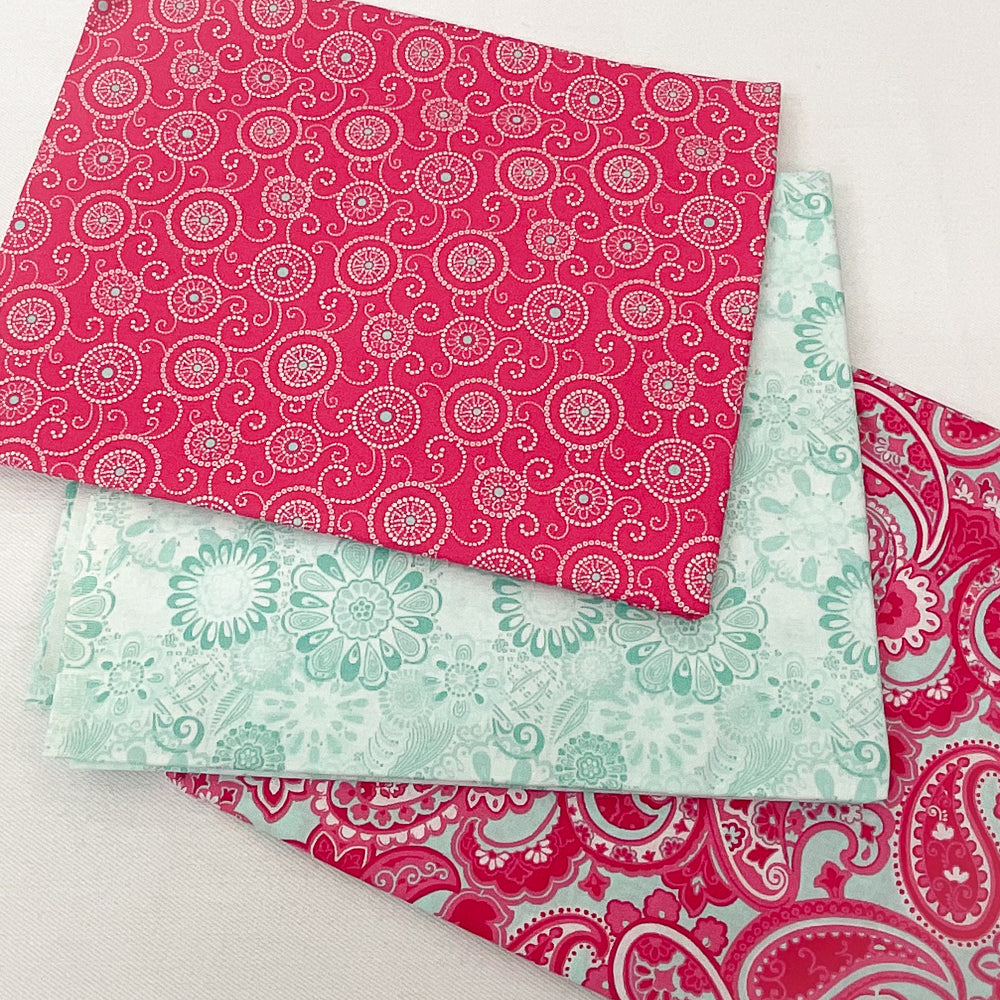 - Bundle fabrics include 1 yard pink floral paisley, 1 yard mint floral, 3/4 yd pink white teal circle swirl. No pattern is included, but these fabrics could be used for the Craftsy Sew Sturdy Travel Organizers class from Annie Unrein.