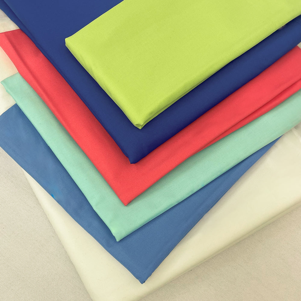 - Bundle fabrics include: 3/4 yd lime green solid, 1 3/4 yd blue solid, 1 5/8 yd mint solid, 1 1/8 yd coral pink solid, 3 yds cobalt blue solid, 5 1/4 yds cream white solid. Pattern is not included