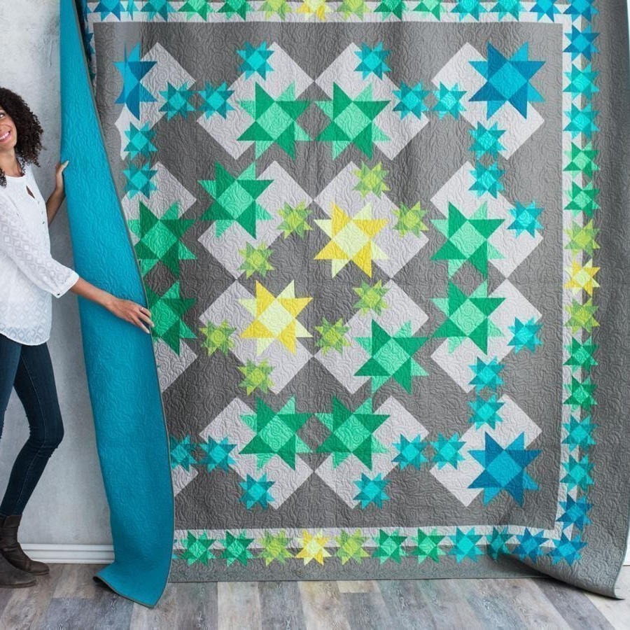 - Bundle fabrics include: 5/8 yd dark teal solid, 5/8 yd teal solid, 3/4 yd green solid, 3/8 yd grass green solid, 3/8 yd pear green solid, 3/8 yd chartreuse green solid, 3/8 yd lime green solid, 3/4 yd teal solid, 7/8 yd classic green solid, 7/8 yd spearmint green solid, 1 yd gray solid, 2 7/8 yds light gray solid, 6 1/2 yd stone gray solid. Pattern is not included. Quilter's Quandary Pattern by Debbie Caffrey could possibly be used with these fabrics and is available for purchase here: https://quiltwoman.com/products/quilters-quandary-queen-quilt-pattern-dcm-042