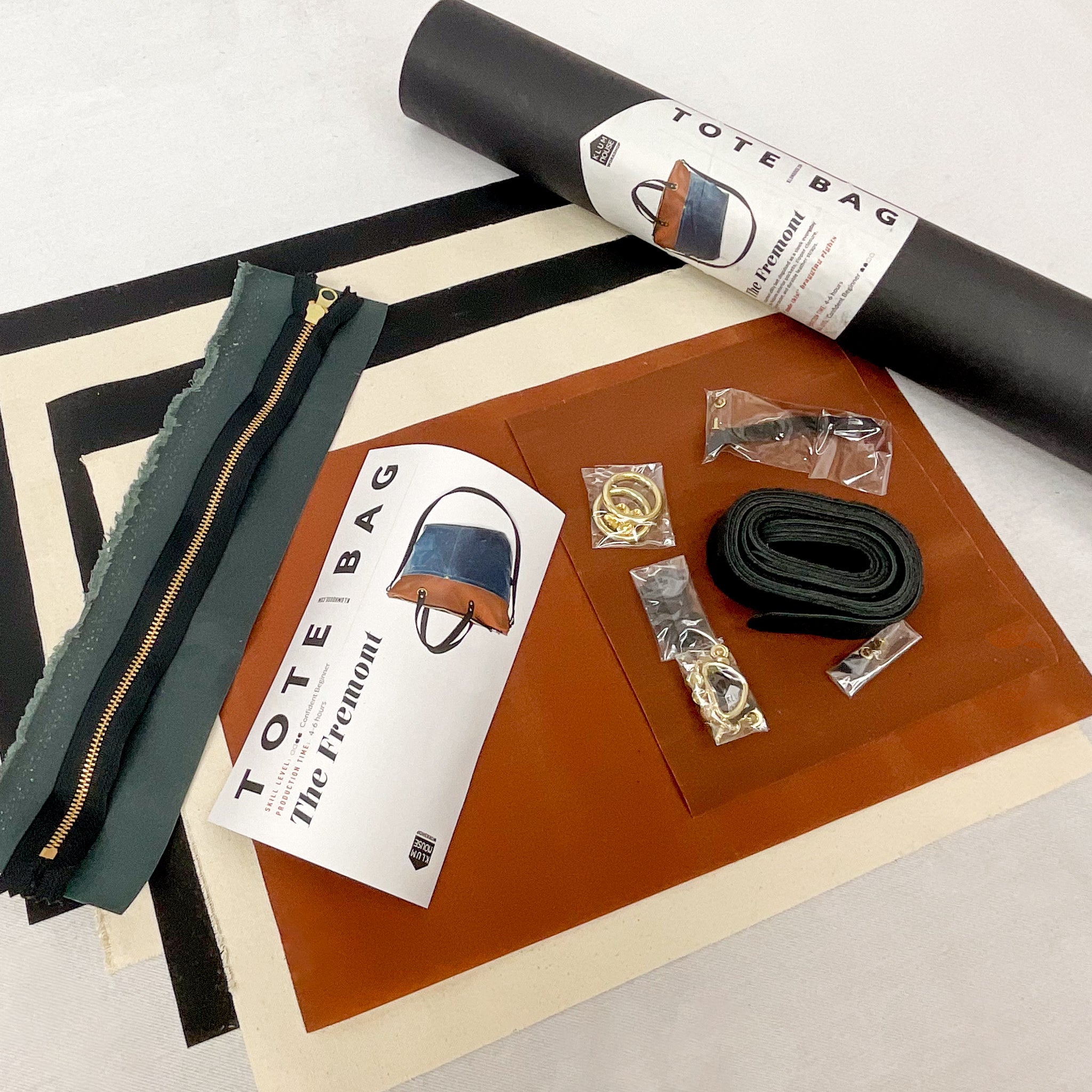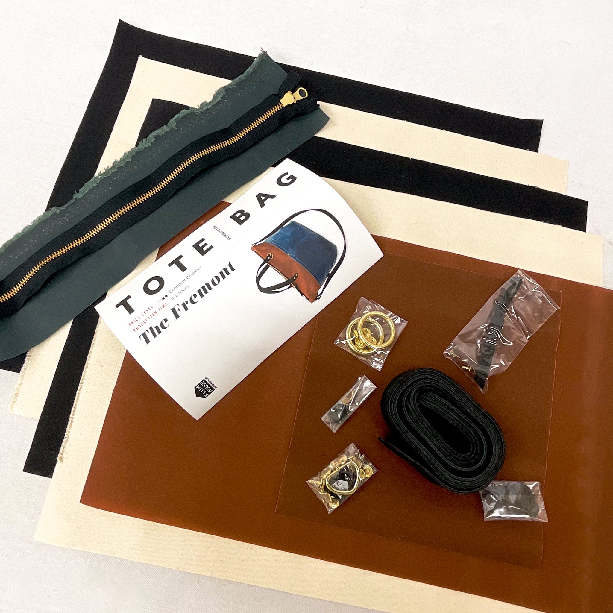 -Colors as pictured, includes canvas, zipper, leather strips, hardware, instructions.