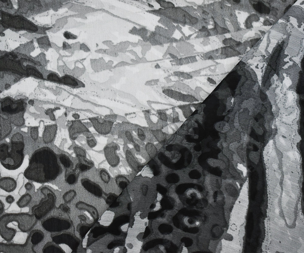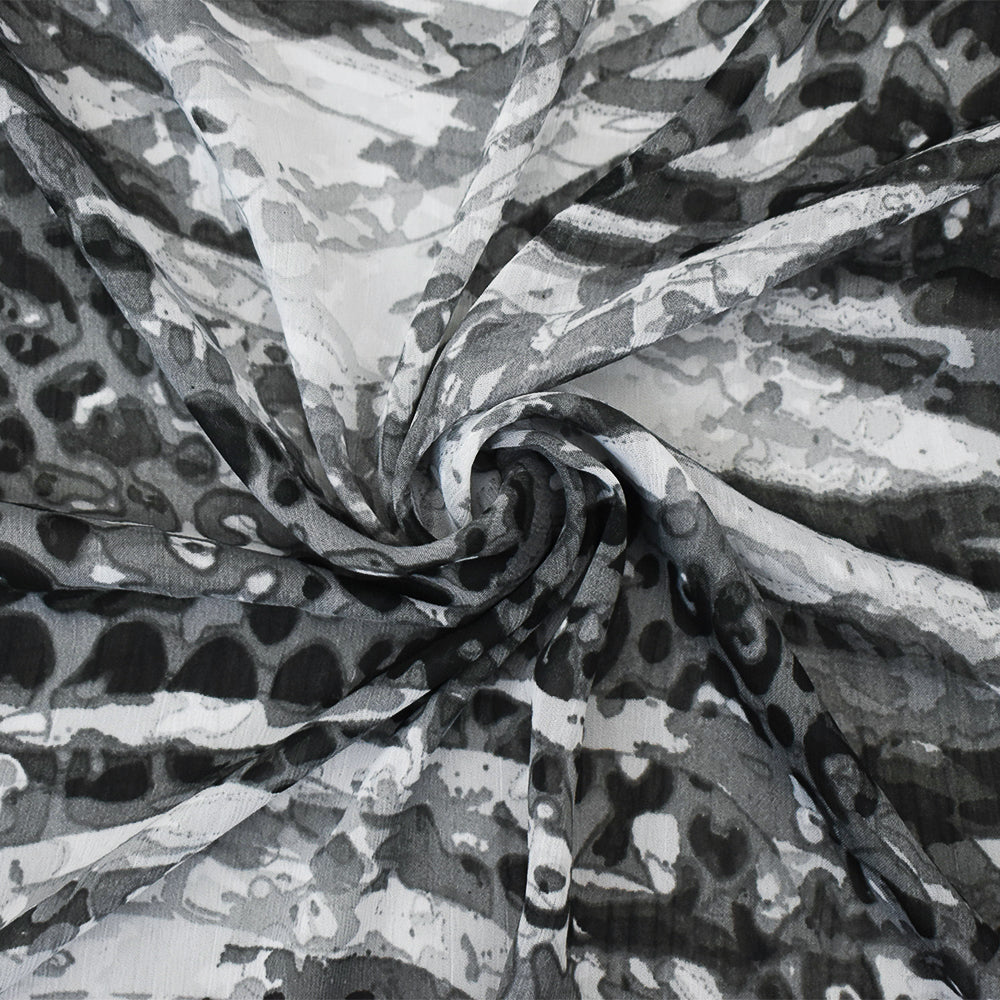 Black-Gray Watercolor Multi Animal Printed Poly Chiffon Woven Fabric