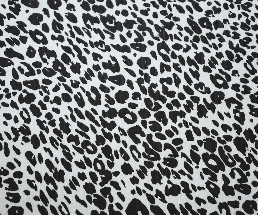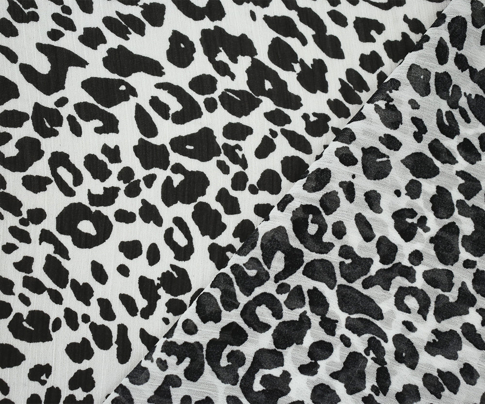 Black-White Leopard Printed Poly Yoryu Crinkle Chiffon Woven Fabric