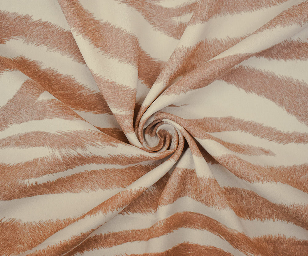 Brown-Ivory Zebra Pattern Printed Poly Charmeuse Woven Fabric