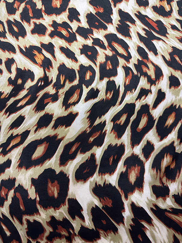 Gold Multi Leopard Animal Print Poly Charmeuse Satin Fabric