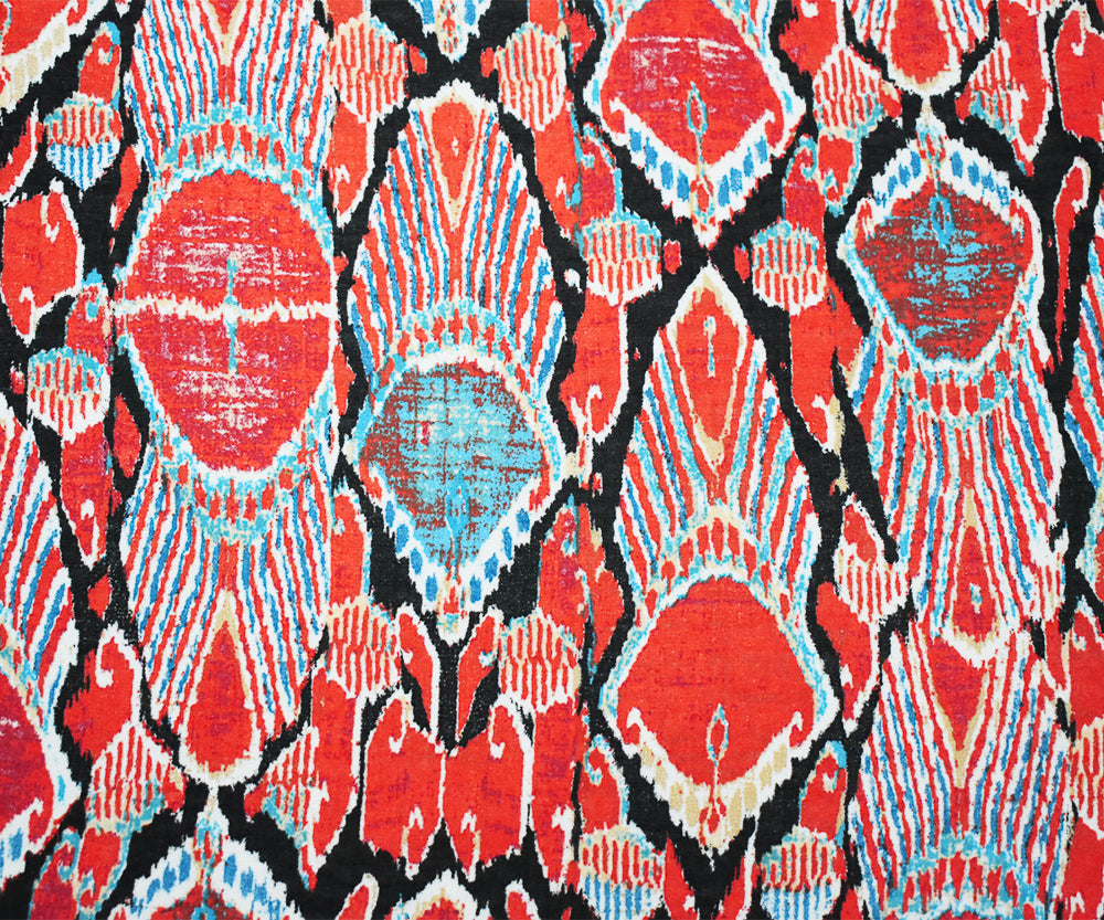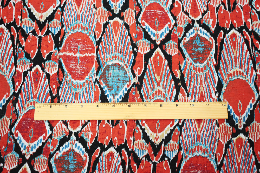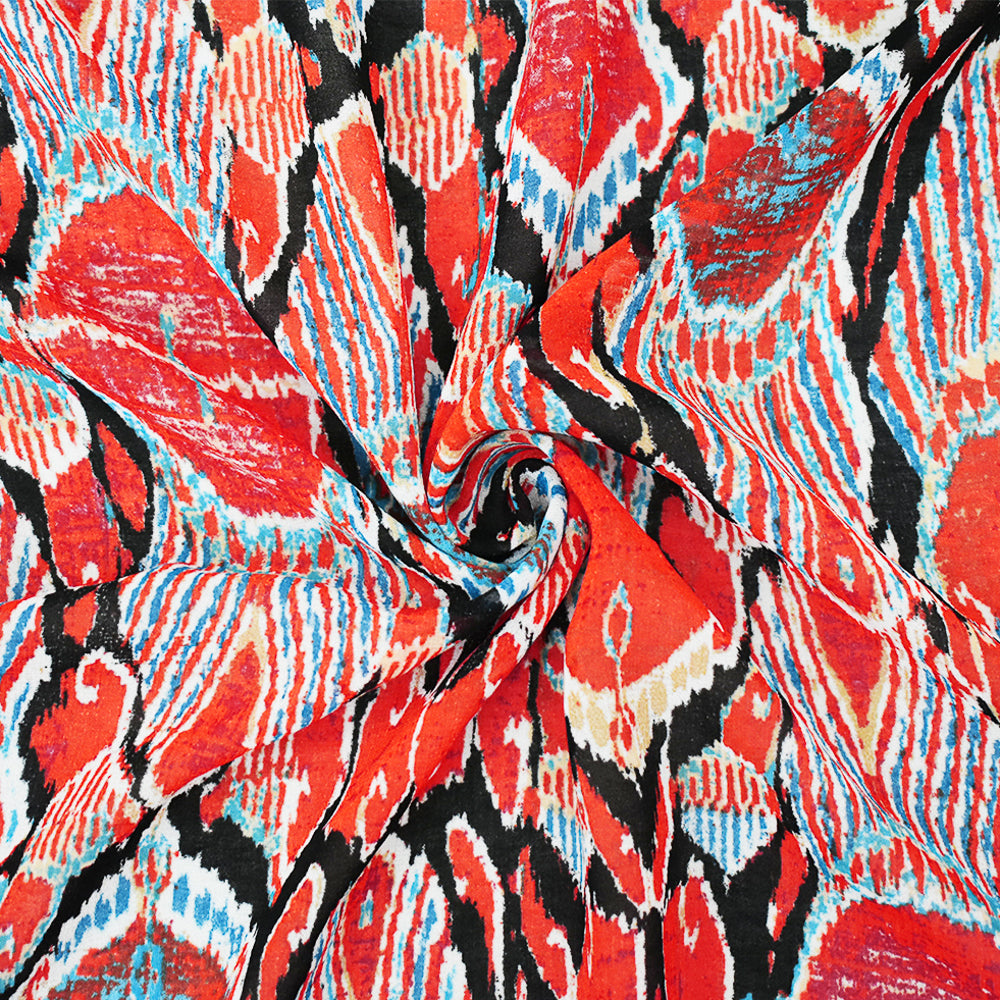 Orange-Black-Multi Abstract Peacock Feather Print Poly Chiffon Woven Fabric