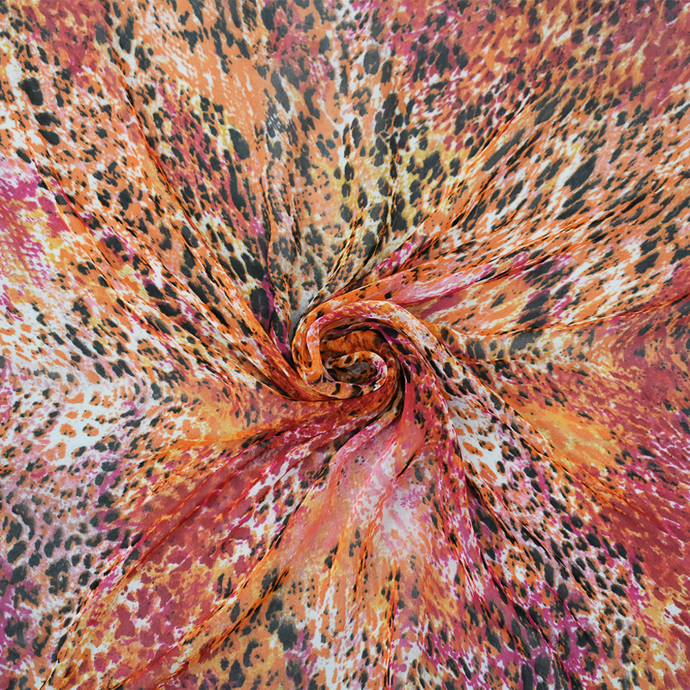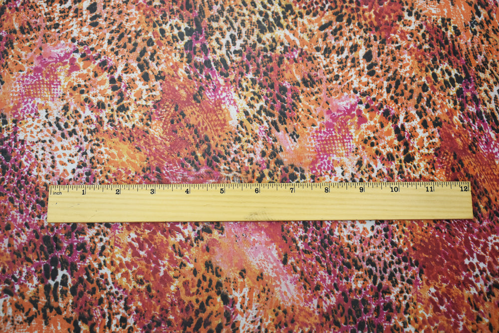 Orange-Red-Multi Reptile Printed Poly Chiffon Woven Fabric