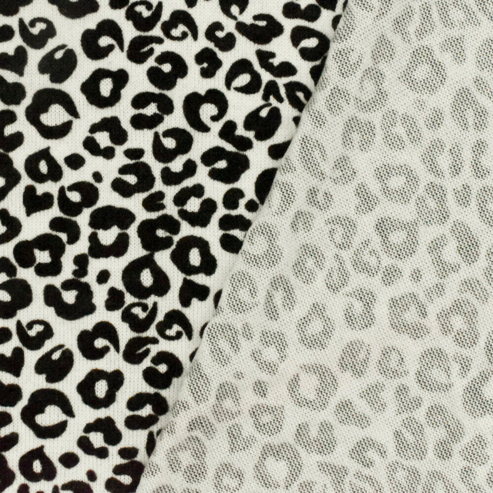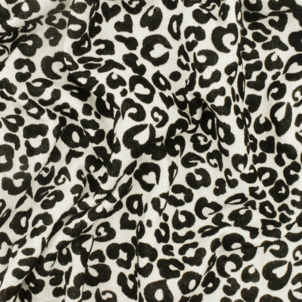 Rare White-Black Velvet Leopard Velvet Flocked Printed Jersey Knit Fabric