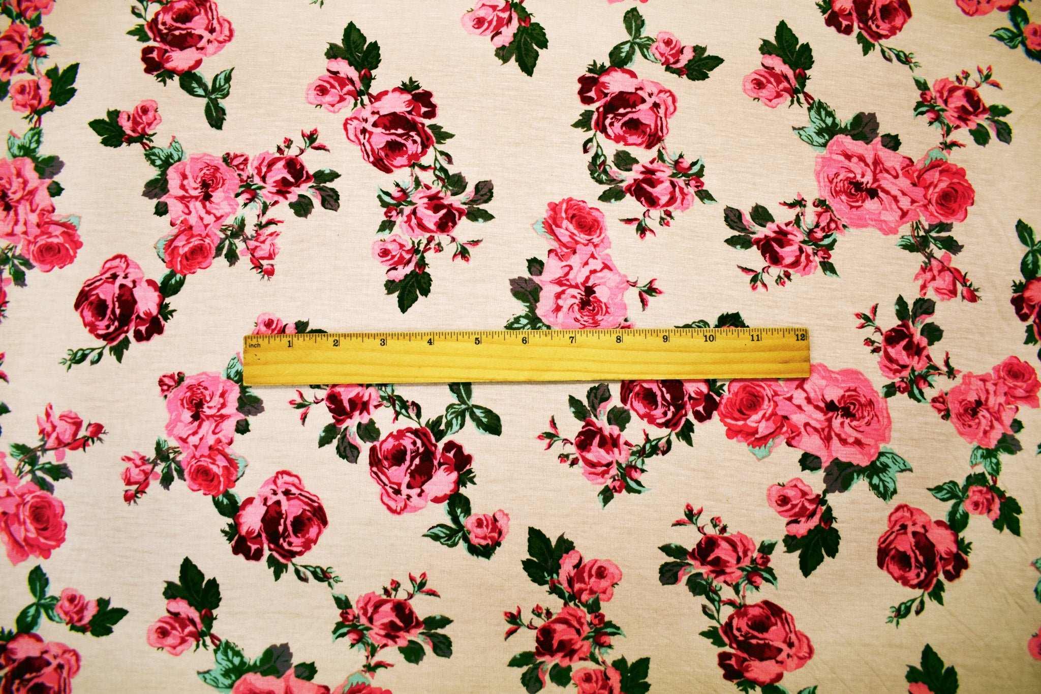 Beige-Multi Rayon Stretch Spandex Floral Print Jersey Knit Fabric