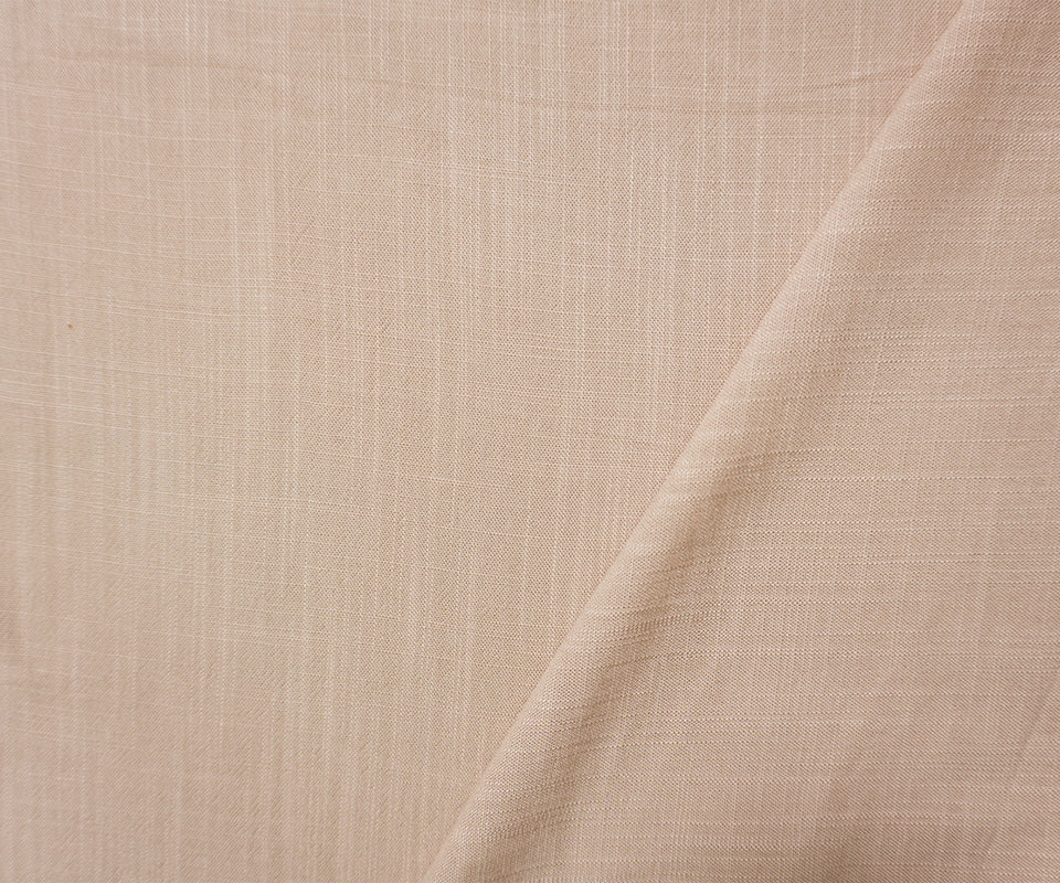Beige Rayon Solid Cross Hatch Linen-Look Challis Woven Fabric