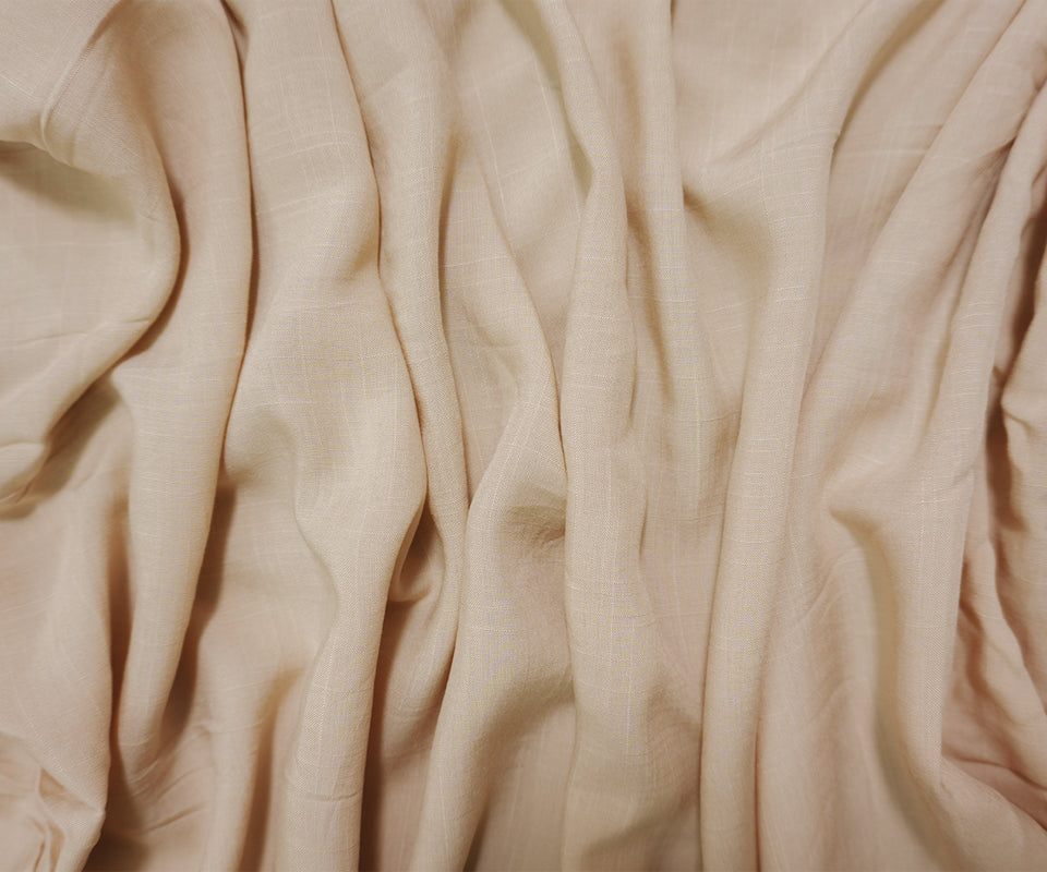 Beige Rayon Solid Cross Hatch Linen-Look Challis Woven Fabric