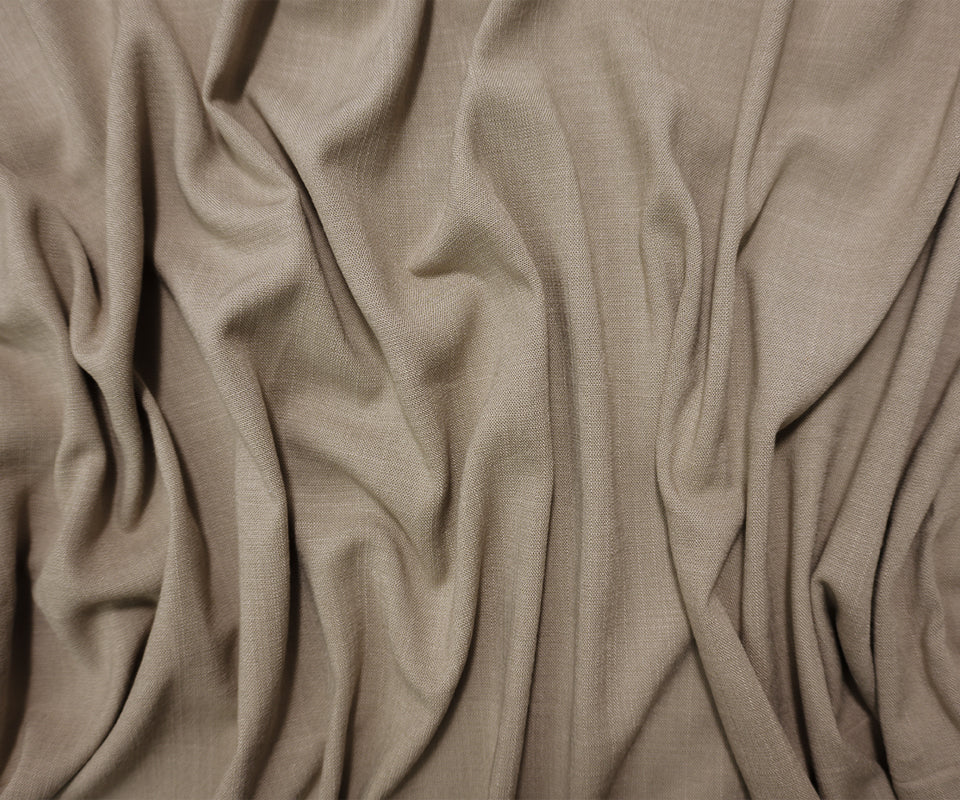 Taupe Brown Linen-Look Rayon Solid Cross Hatch Challis Woven Fabric
