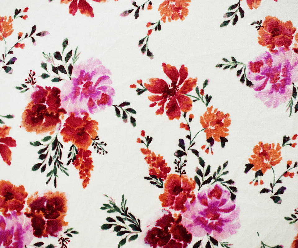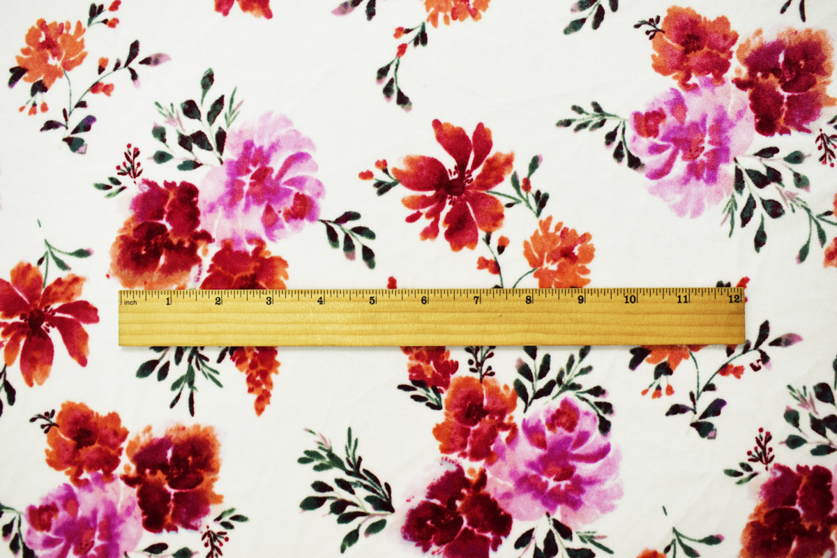 White-Red-Multi Poly Stretch Floral Printed Velvet Knit Fabric
