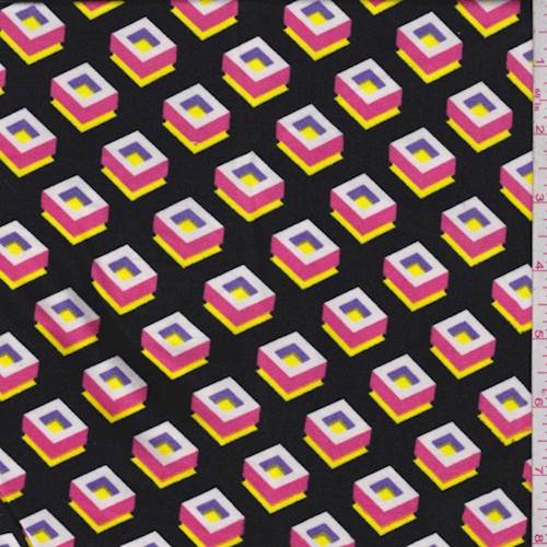 Black/Hot Pink/Yellow Geo Cube Double Brushed Jersey Knit Fabric