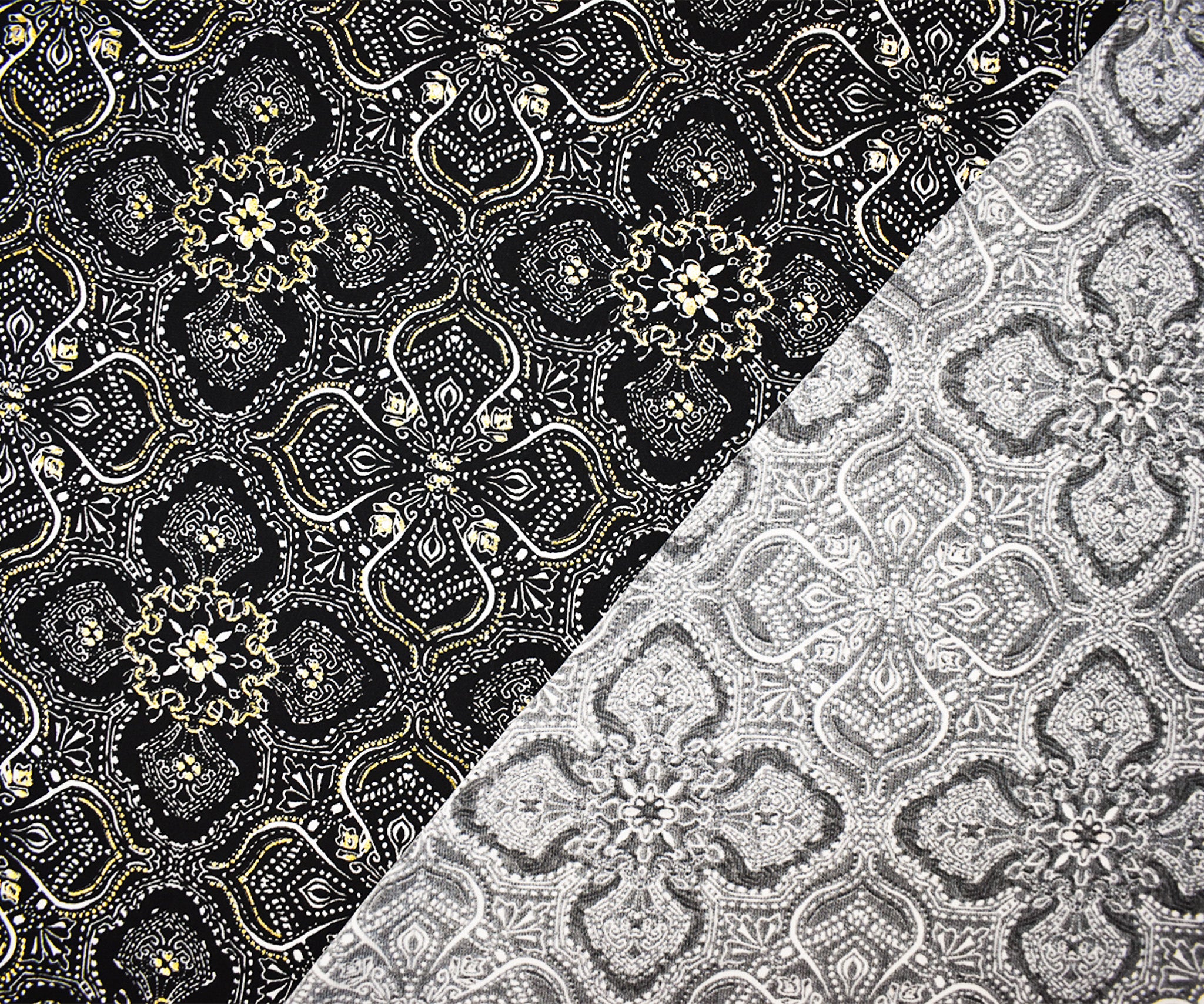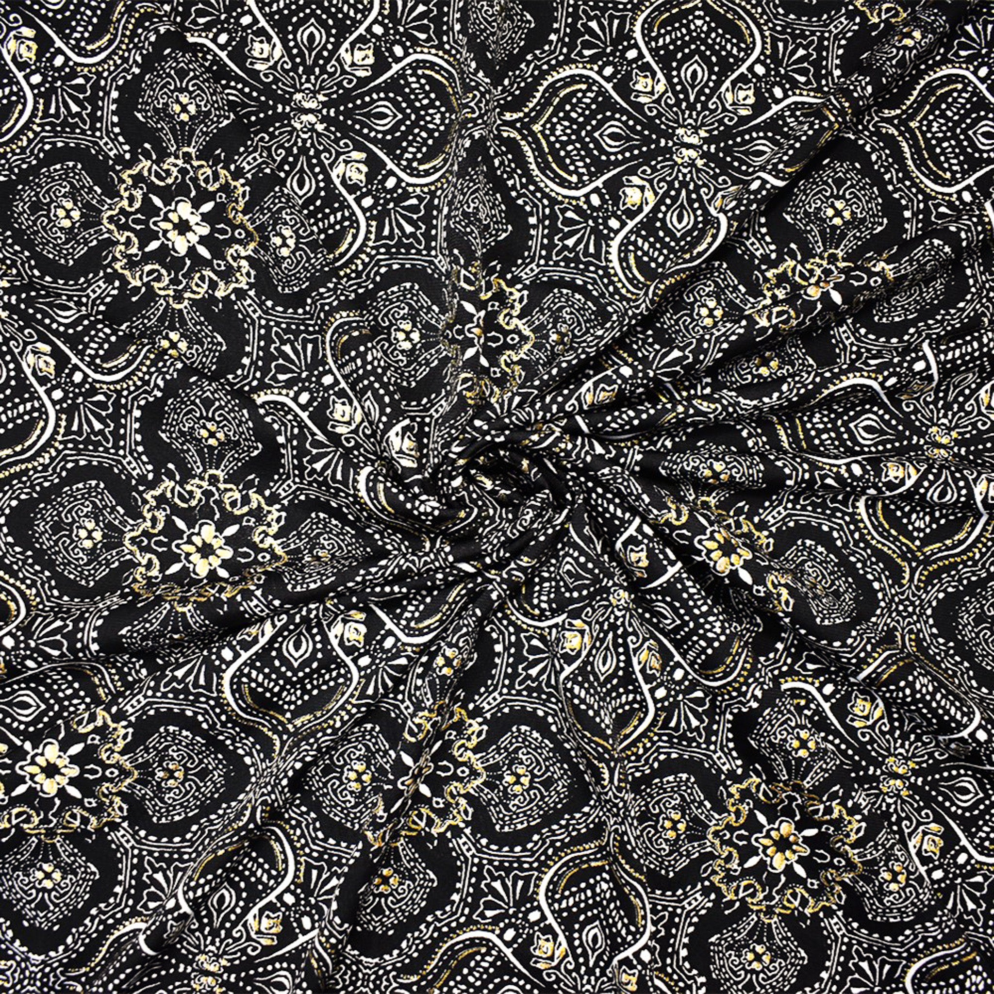 Black-Multi Poly Stretch Baroque Foil Printed ITY Knit Fabric