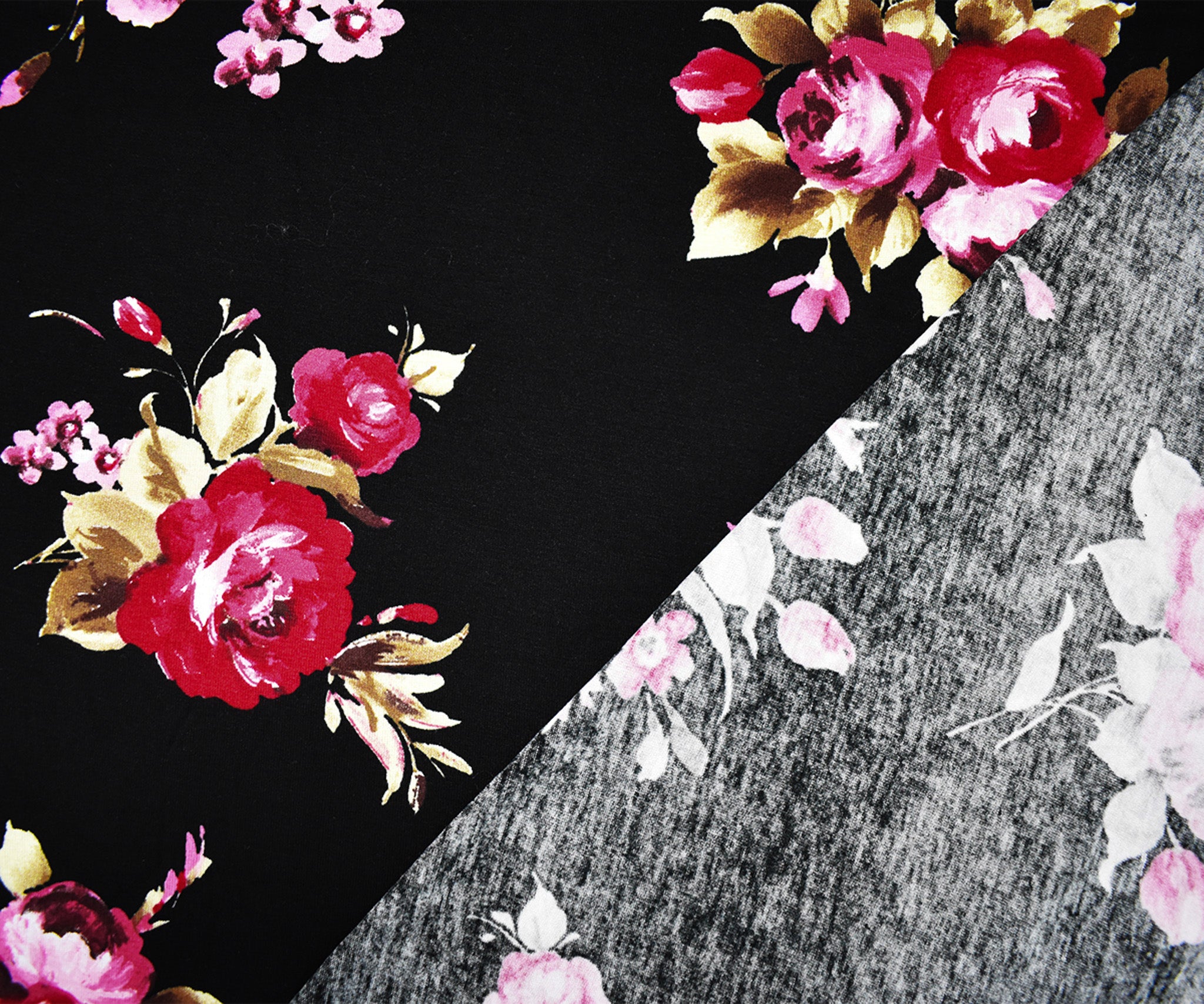Black-Multi Rayon Stretch Spandex Floral Printed Jersey Knit Fabric