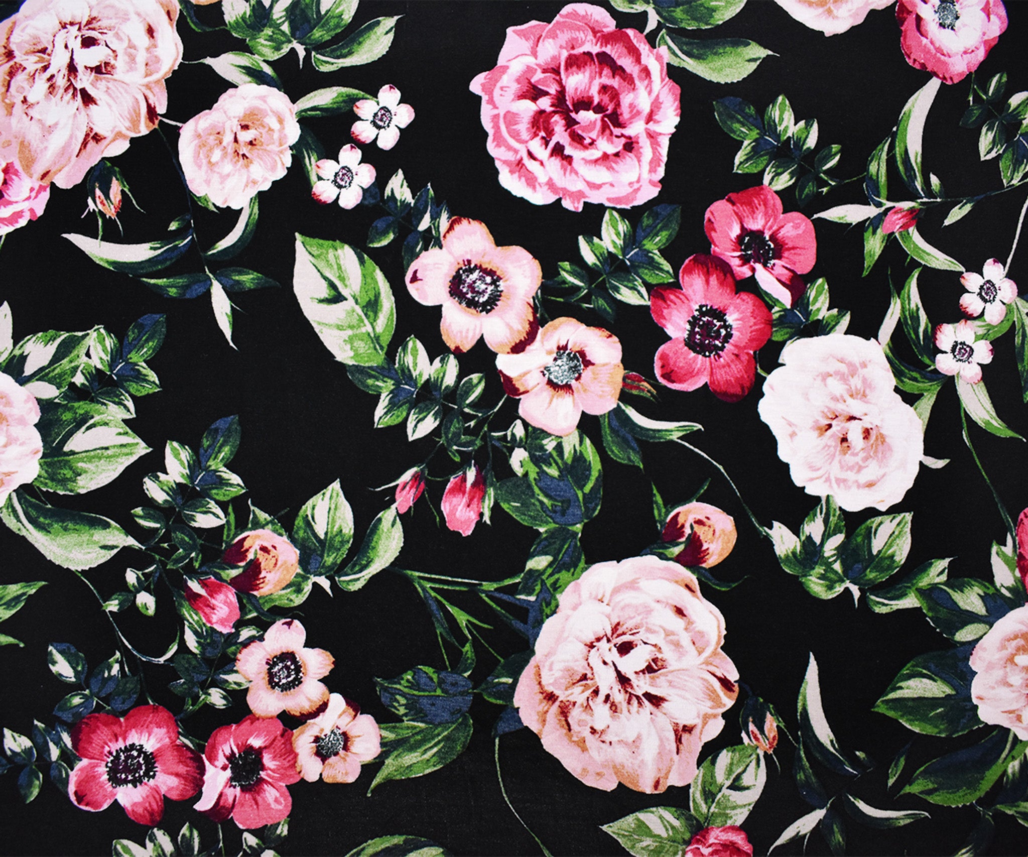 Black-Pink-Multi Rayon Stretch Spandex Floral Jersey Knit Fabric