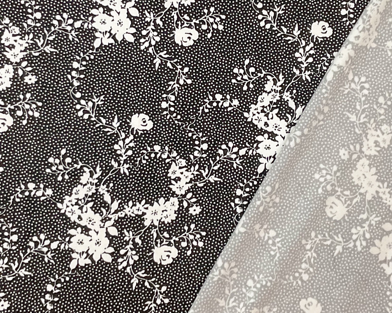 Black-White Poly Spandex Stretch Floral Print DB Jersey Knit Fabric
